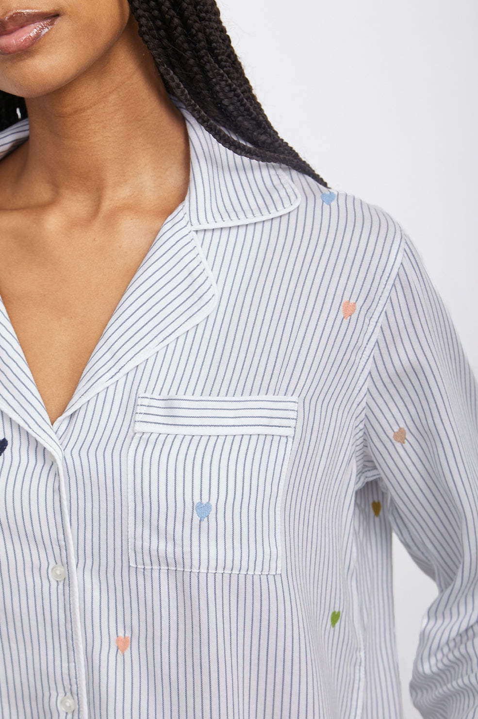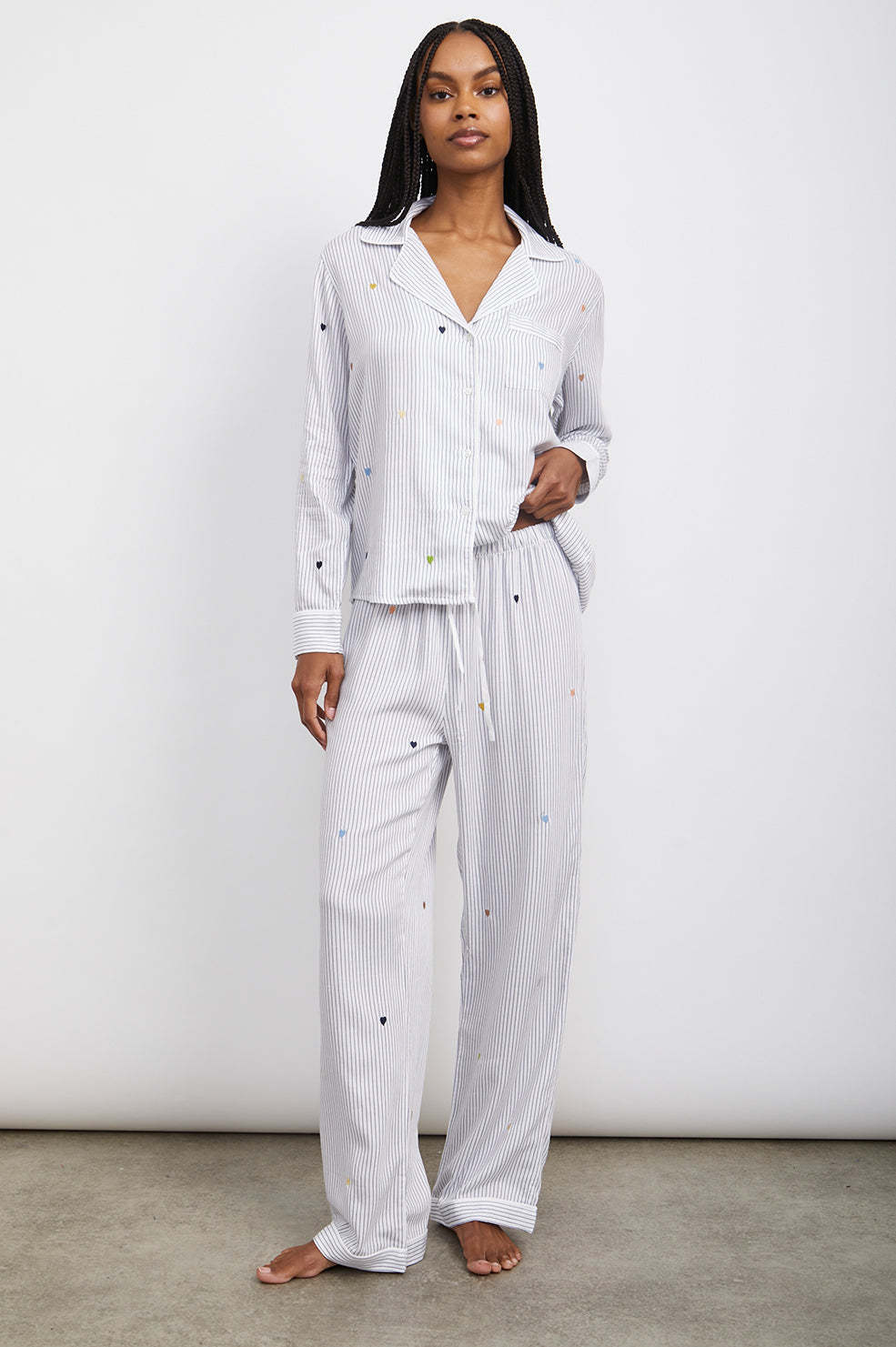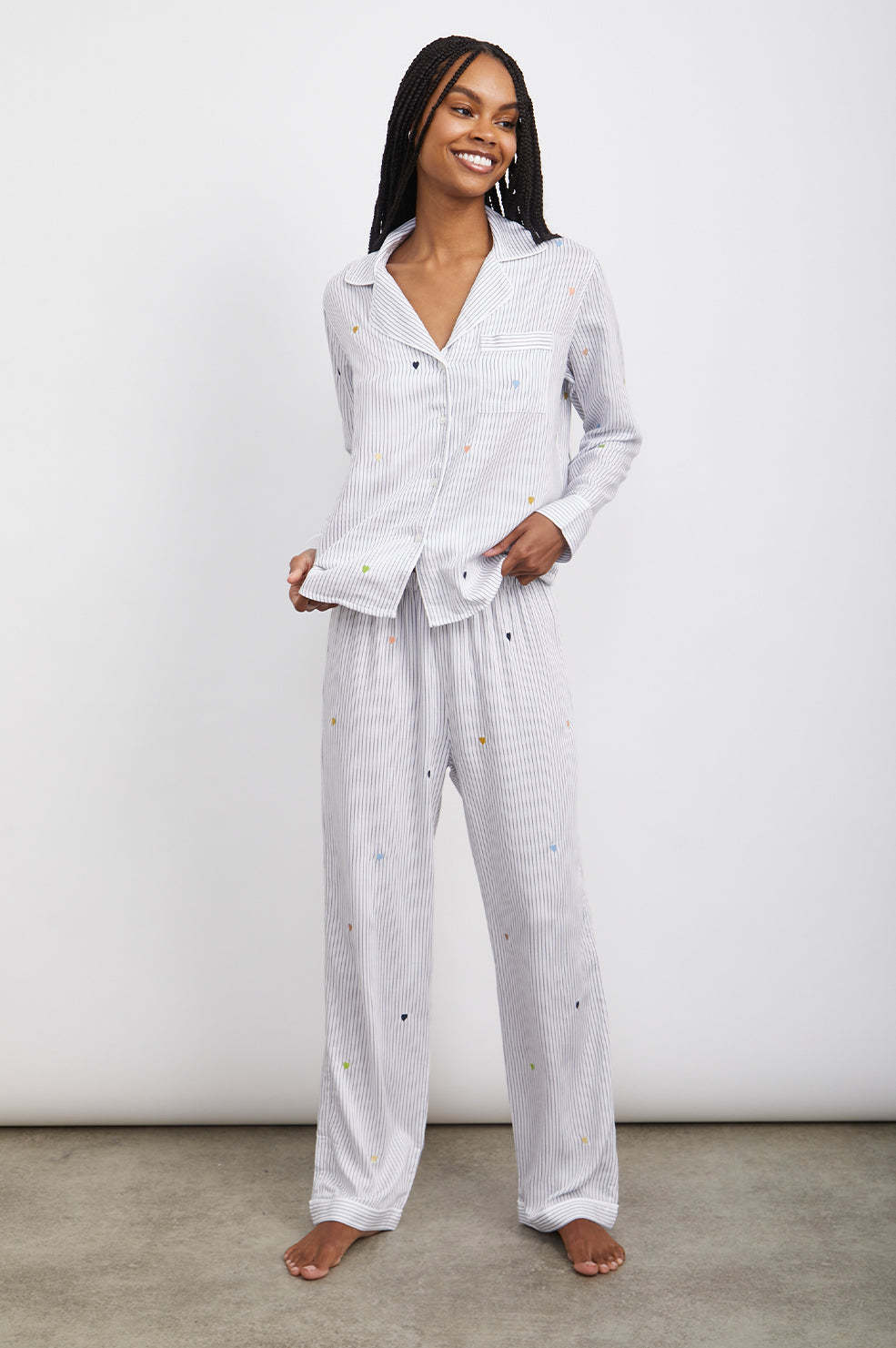 CLARA PAJAMA SET - ROBIN STRIPE WITH HEART EMBROIDERY