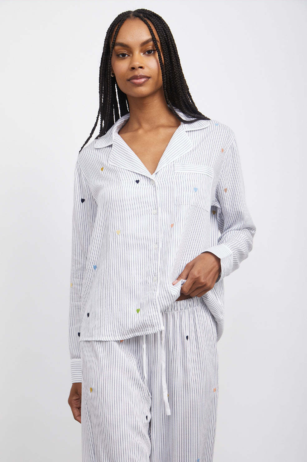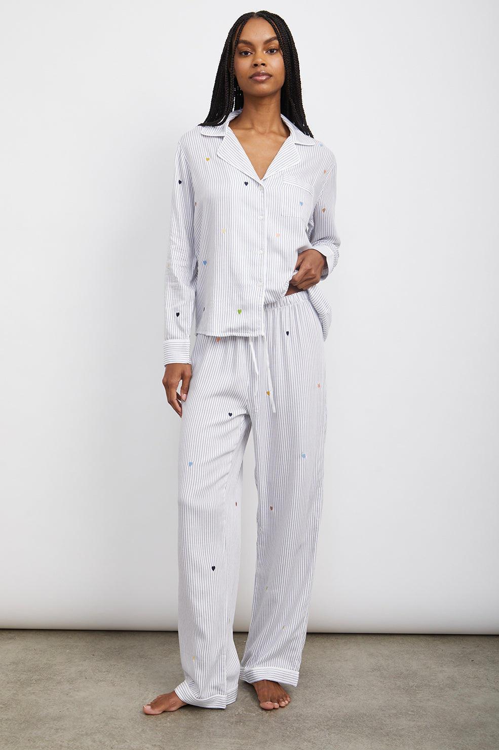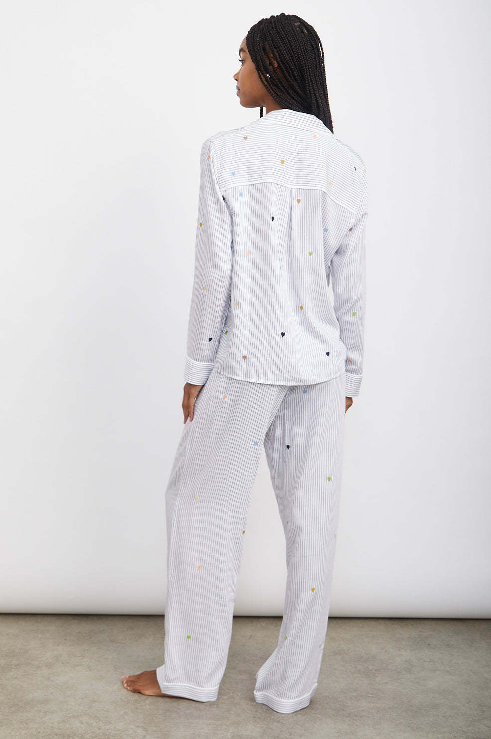 CLARA PAJAMA SET - ROBIN STRIPE WITH HEART EMBROIDERY