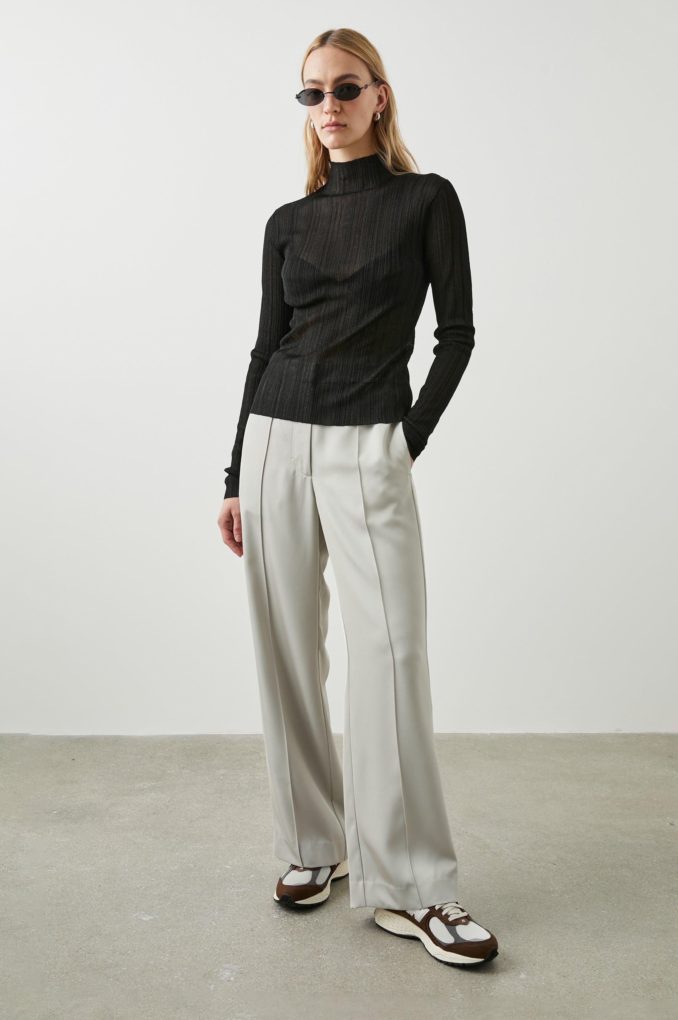 From work to the weekend, the Alta is your new go-to trouser. Tailored to perfection with vertical pleating, a straight silhouette, and elastic on the sides for easy pull-on, these shiny black pants are a staple.
