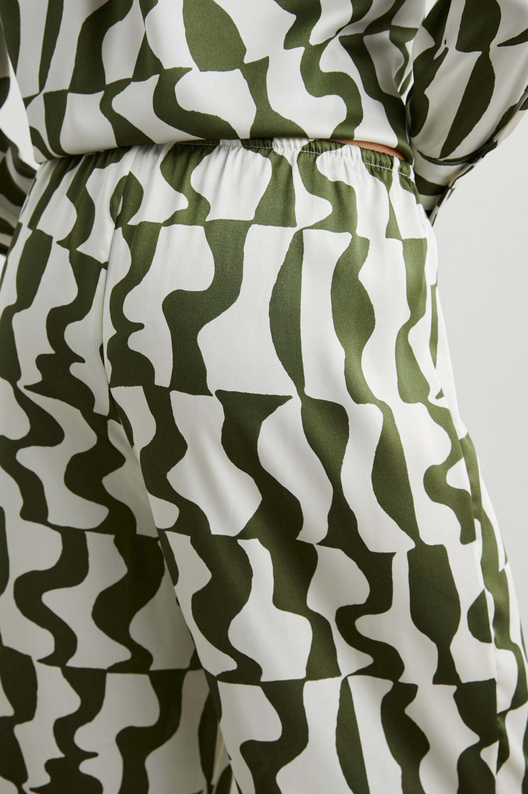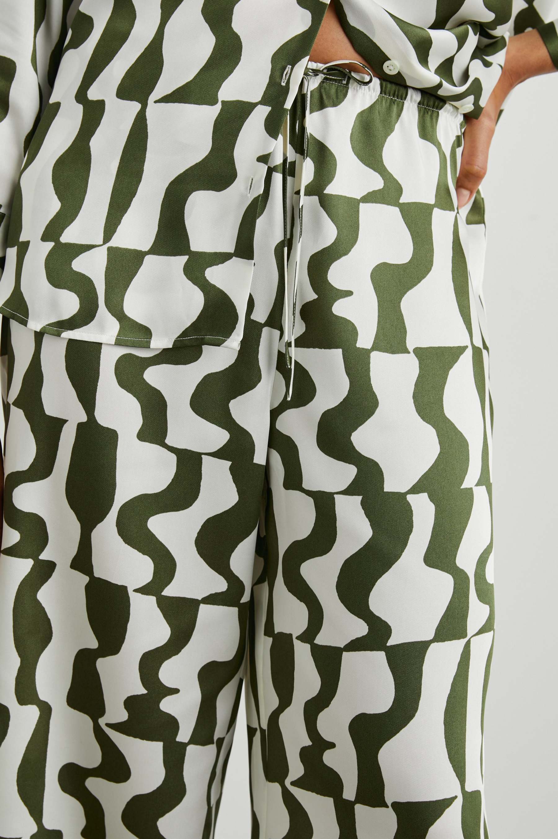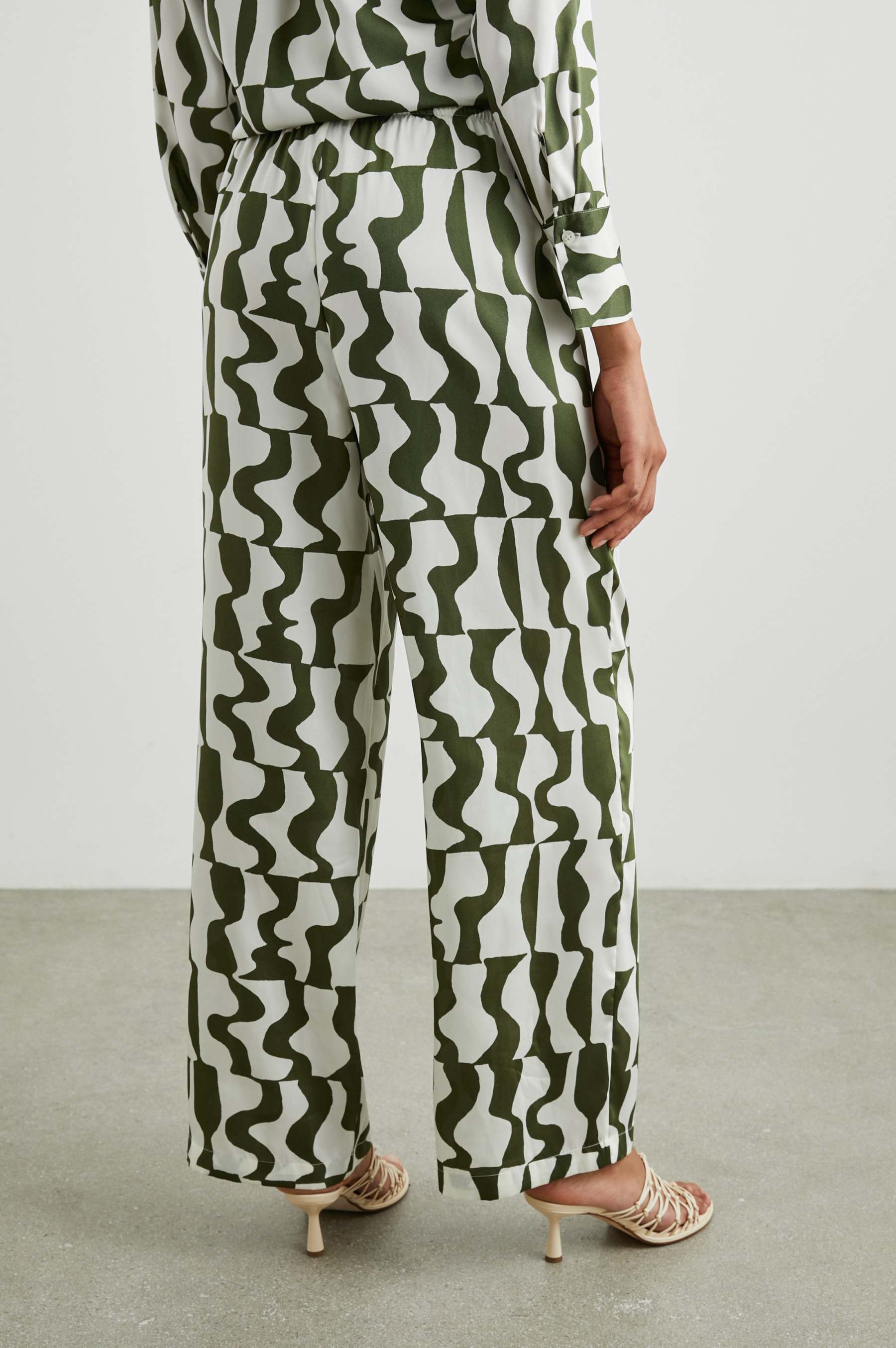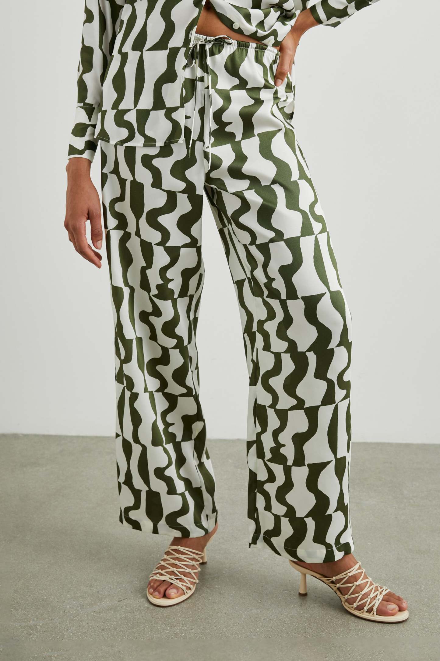 Say goodbye to basic pants and hello to Damani. Made from sheen twill and featuring a funky retro print, this style ties at the waist and flows out to a full-length pant that moves with you effortlessly.