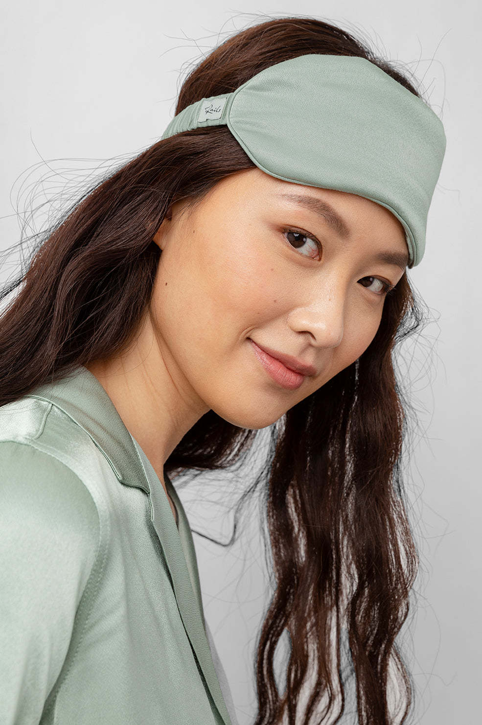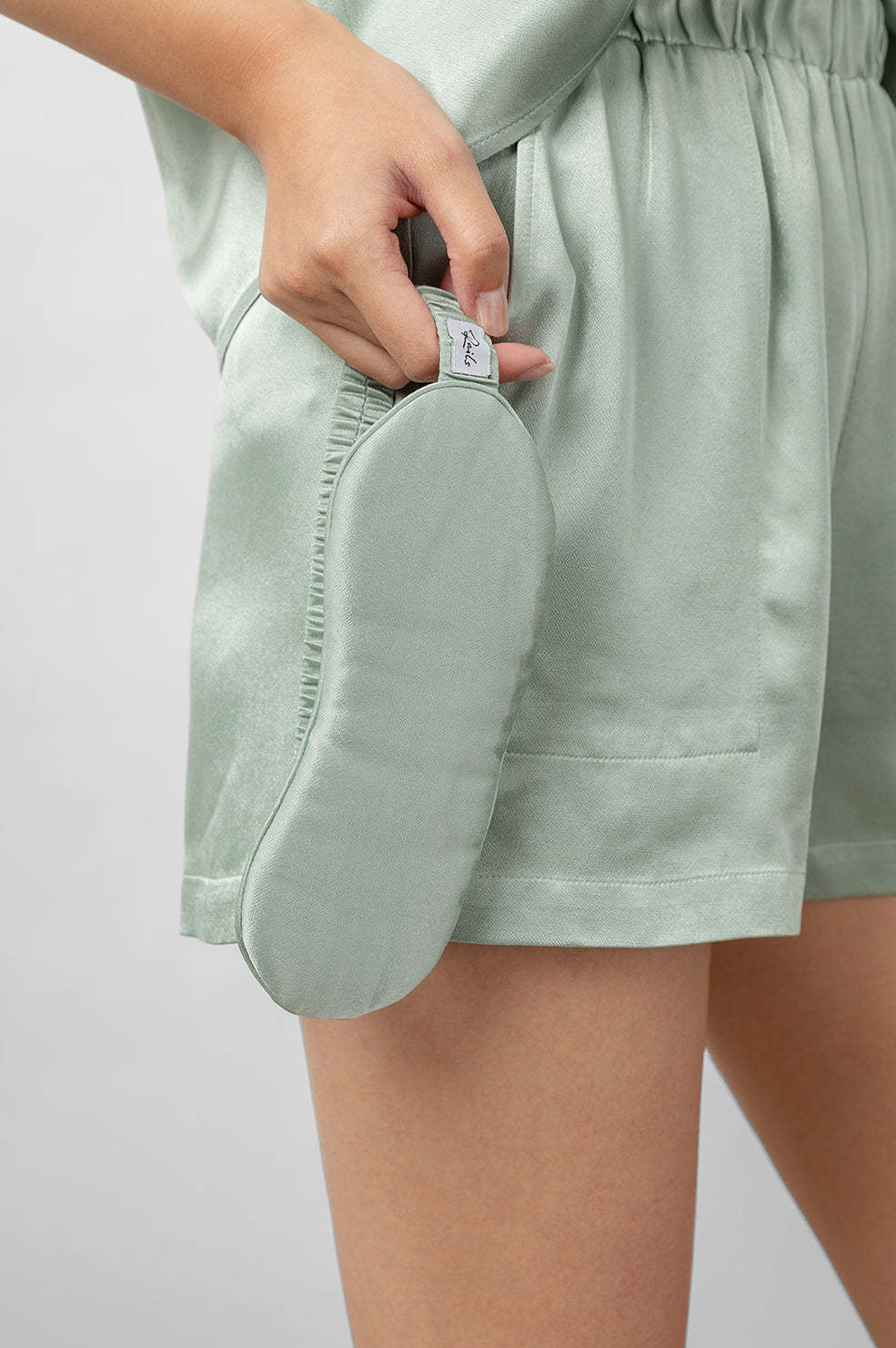 Super smooth, satin crepe, mint green eye mask featuring luxurious fabric and elastic band for supreme comfort. Rest easy with this chic sleep mask, perfect for home or travel.