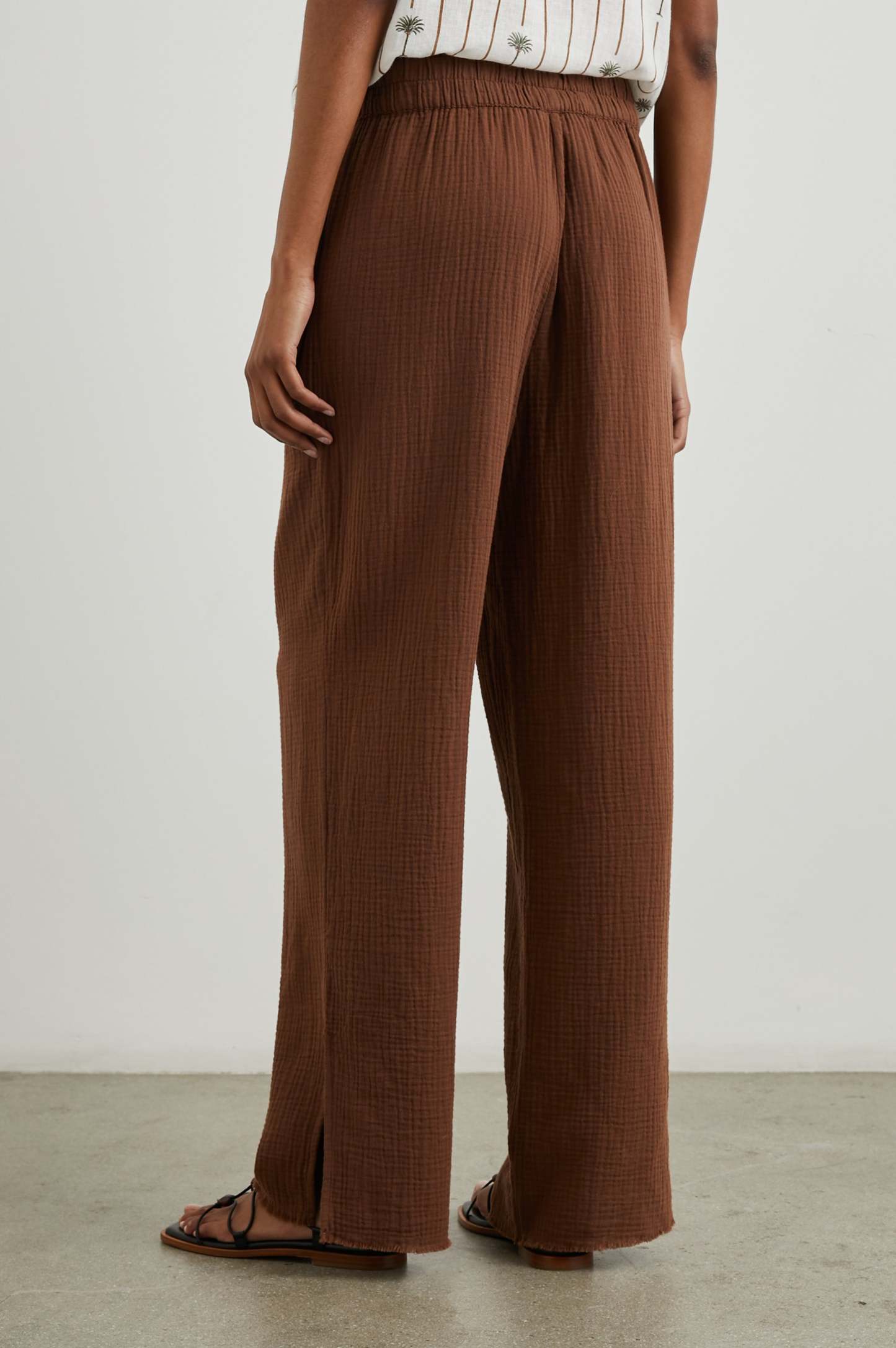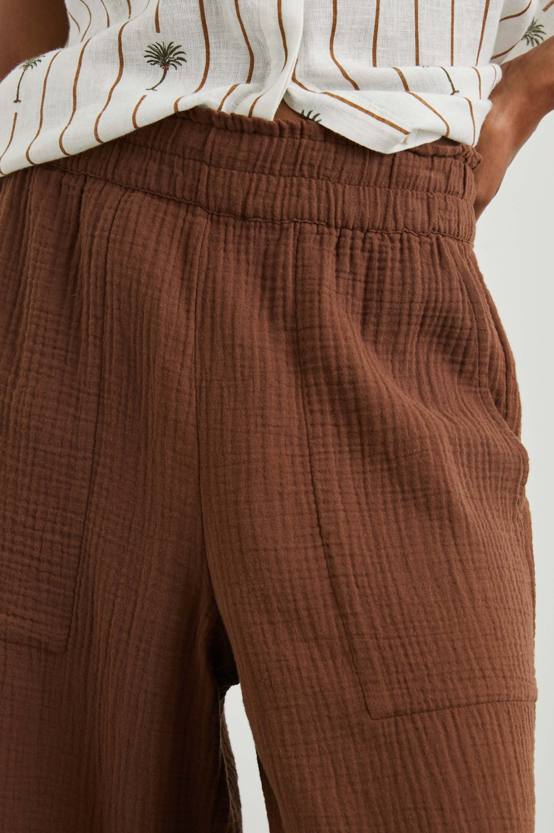 Made with super soft, breezy double gauze cotton in an easy pullover silhouette, these pants are perfect for any occasion. These straight leg pants feature flattering side slits at the outer leg opening and a smocked waistband for added comfort.