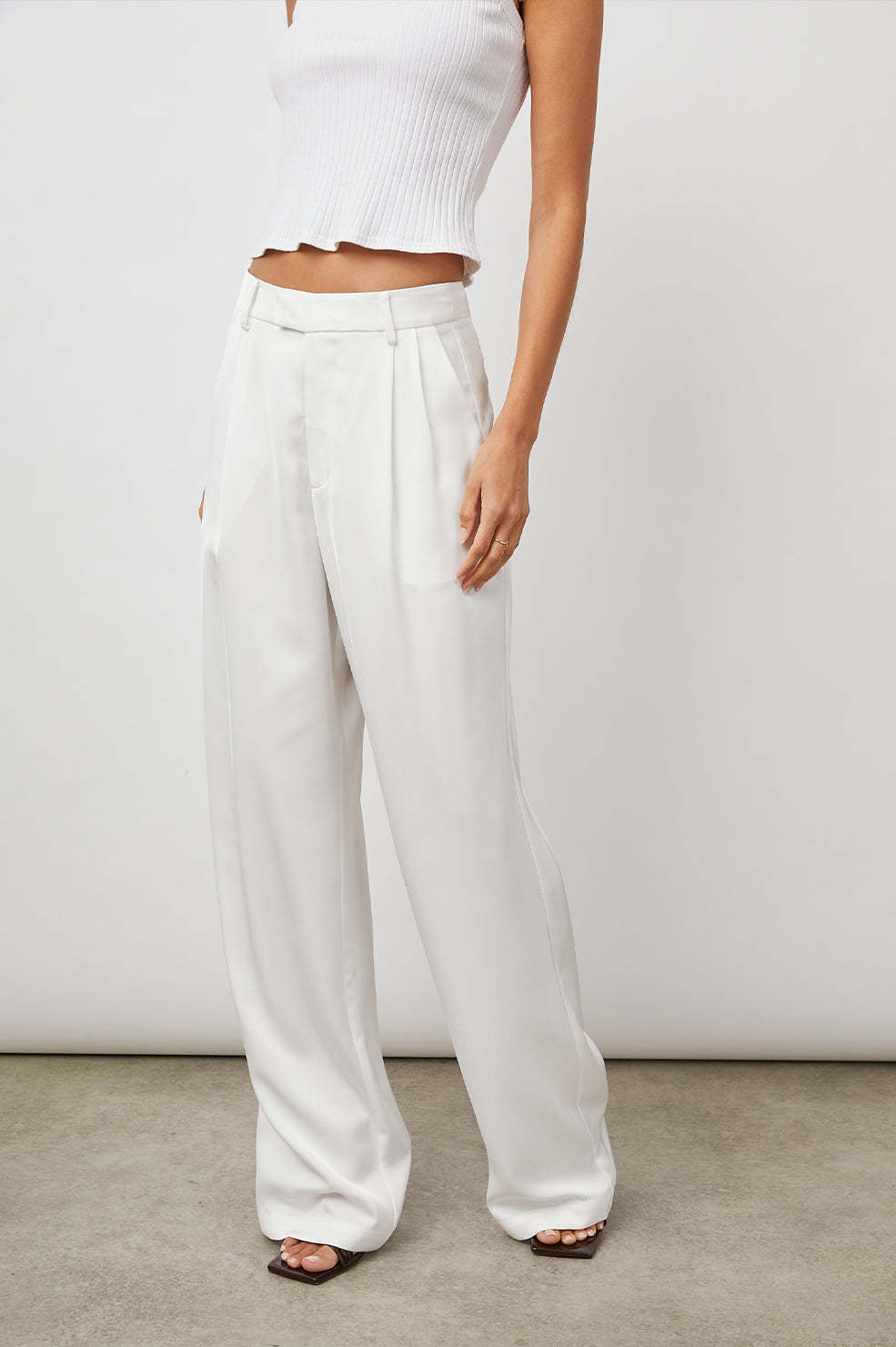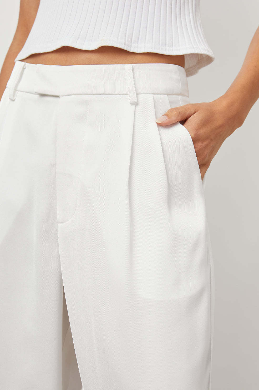 A luxe twist on our classic Marnie pant, this is made from a flattering twill. These trouser pants have a structured look with a pleated straight leg featuring a concealed hook and bar closure and slit pockets at back.